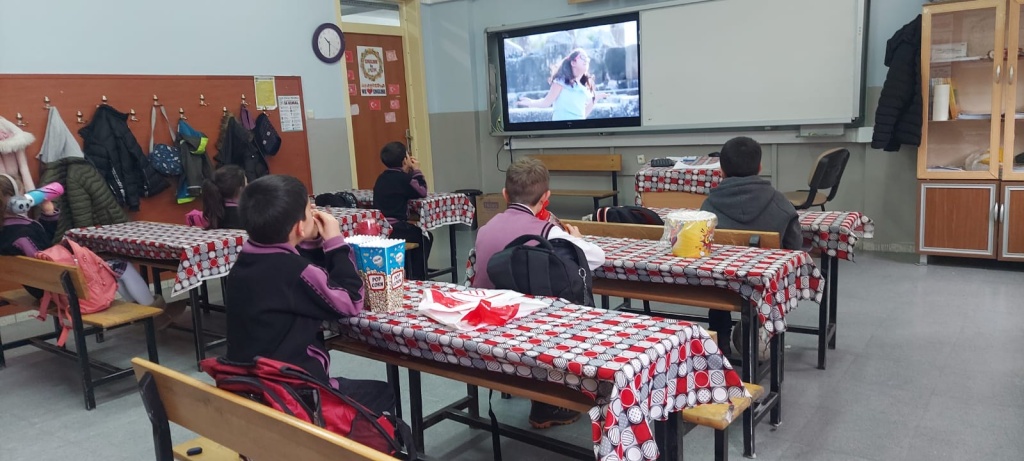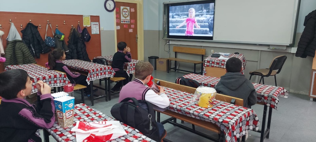 Etkinlikler Haftası'nda 16.01.2024 Salı gününü okulumuz Sinema/Film günü olarak belirlemiştir. Öğretmenlerimizin kontrolünde seçilen ve izlenen filmler ile etkinlik başlatılmıştır. Öğrencilerimiz mısır patlakları ve içecekleri ile keyifli saatler geçirmiştir.